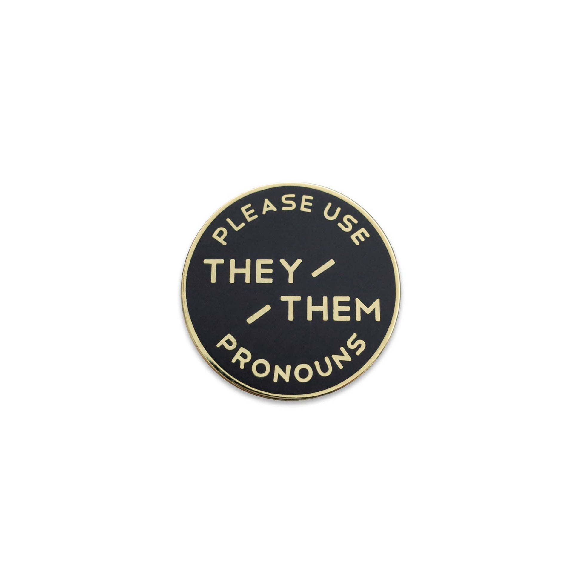 Black & Gold Circular Enamel Pronoun Pin: They/Them