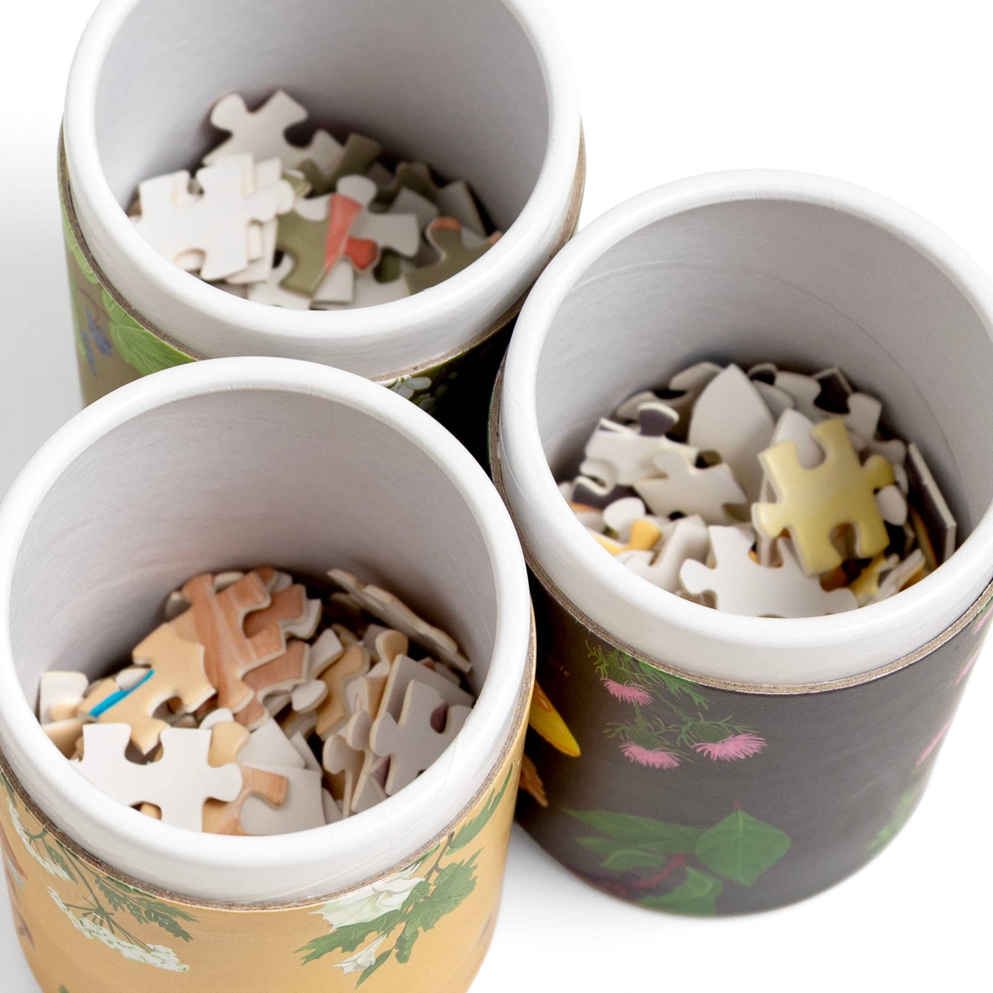 Features | Shaped mini puzzles, cylinder storage boxes with lids