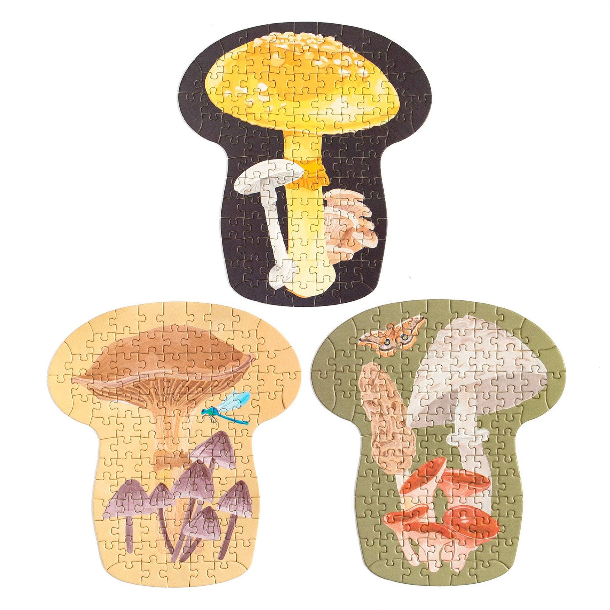 Discover the magic of nature with this set of three 100-piece shaped jigsaw puzzles, each featuring beautifully hand-painted illustrations of mushrooms. Perfect for puzzle lovers, nature enthusiasts, and collectors, this set captures the enchanting world of fungi found in the midnight forest. Each puzzle is uniquely shaped for an extra-special challenge, making it a great gift for kids, adults, and nature lovers alike. Whether you’re cozying up for a relaxing night in or looking for a unique addition to your puzzle collection, this botanical and wildlife-themed puzzle set is a must-have.