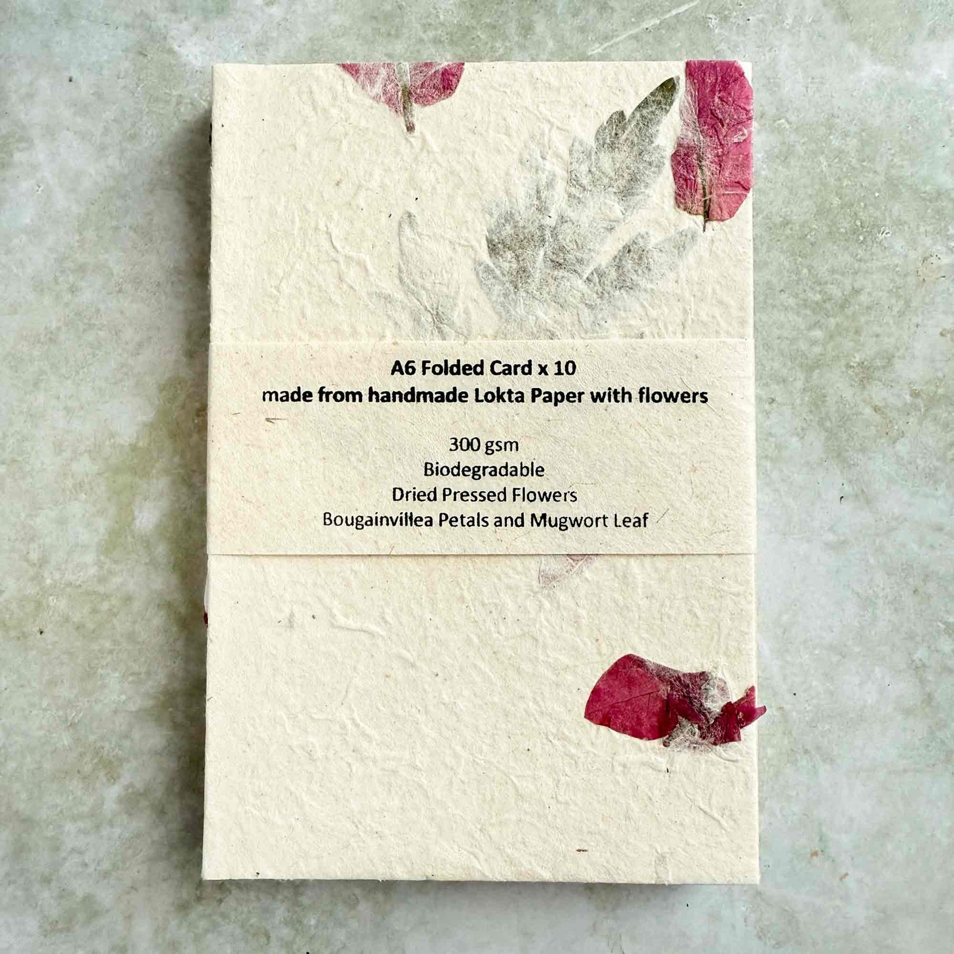 It's textured finish and natural colour is enhanced even further with the addition of Mugwort Leaves and Bougainvillea petals. This beautiful paper also has a wonderfully botanical smell.