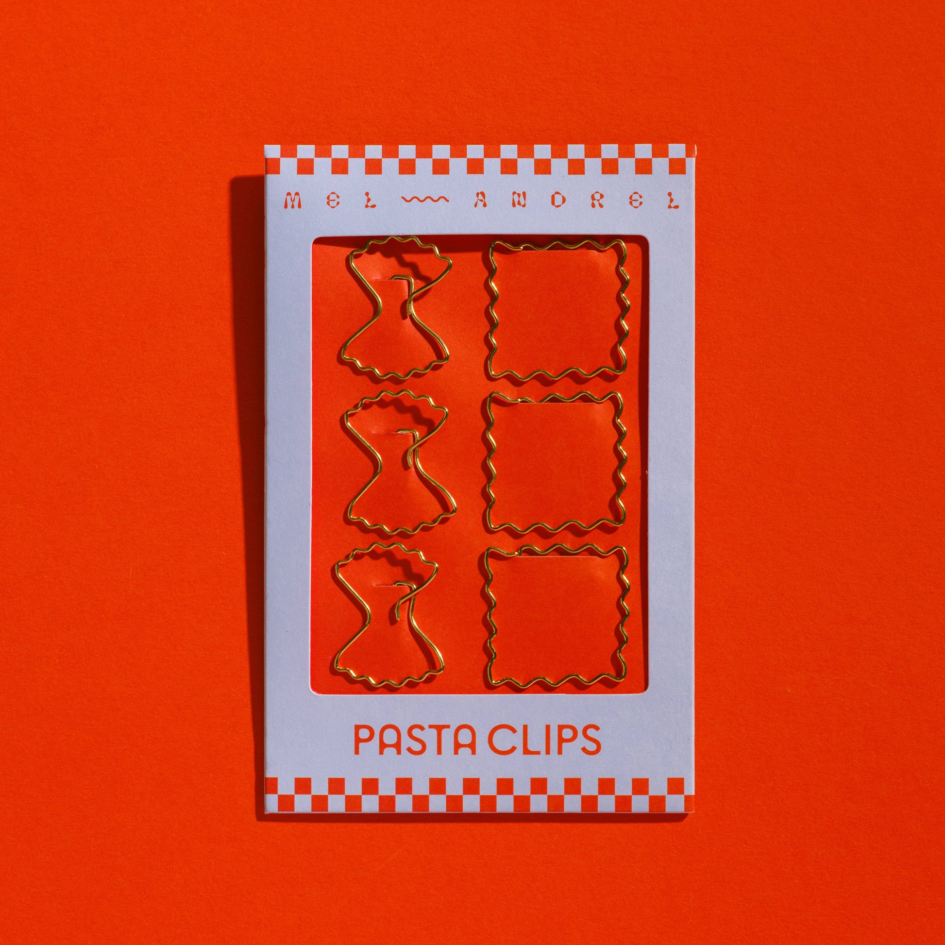 * 6 gold reusable paperclips per pack (3 ravioli, 3 farfalle)