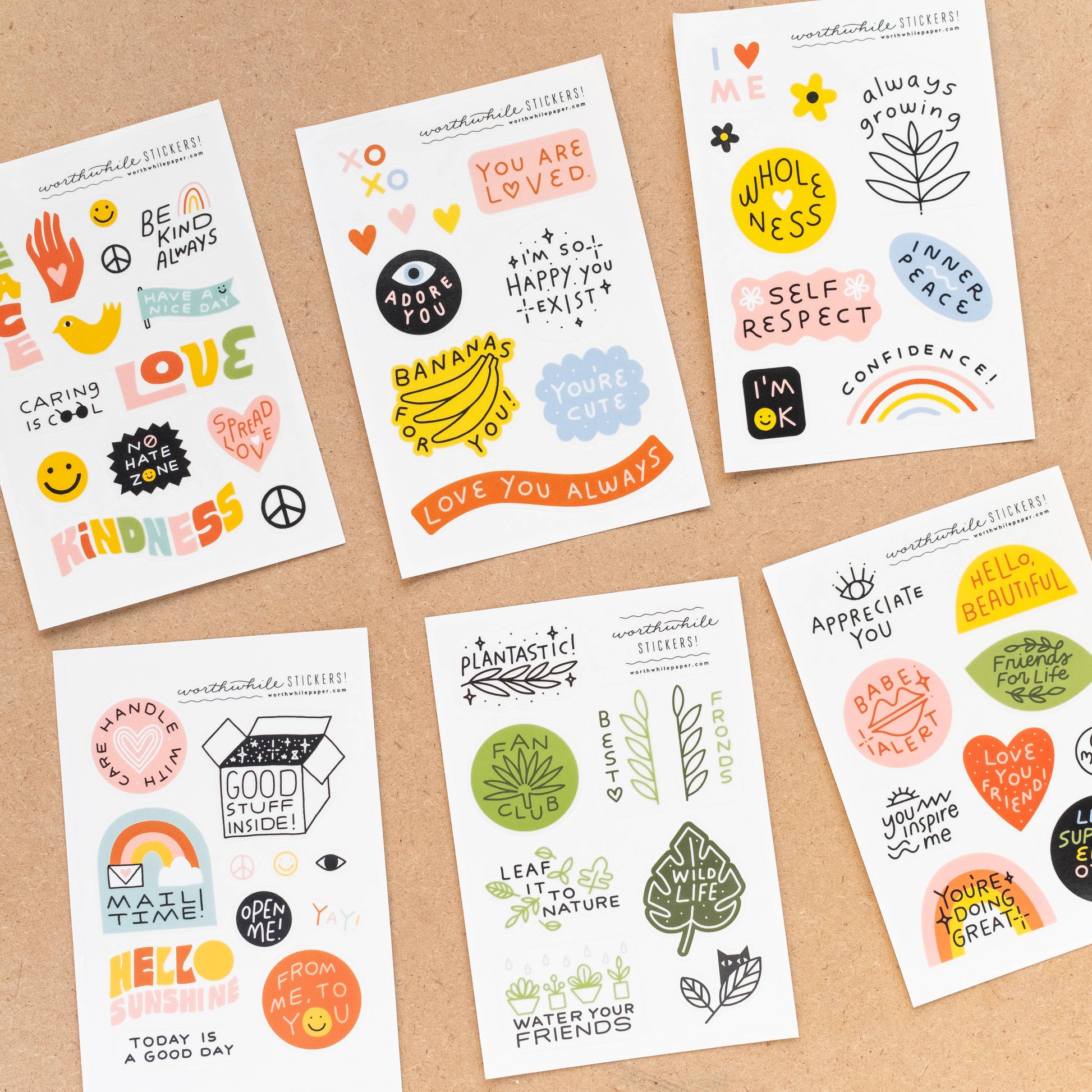 Colorful and positive stickers to promote Peace, Love and Kindness!