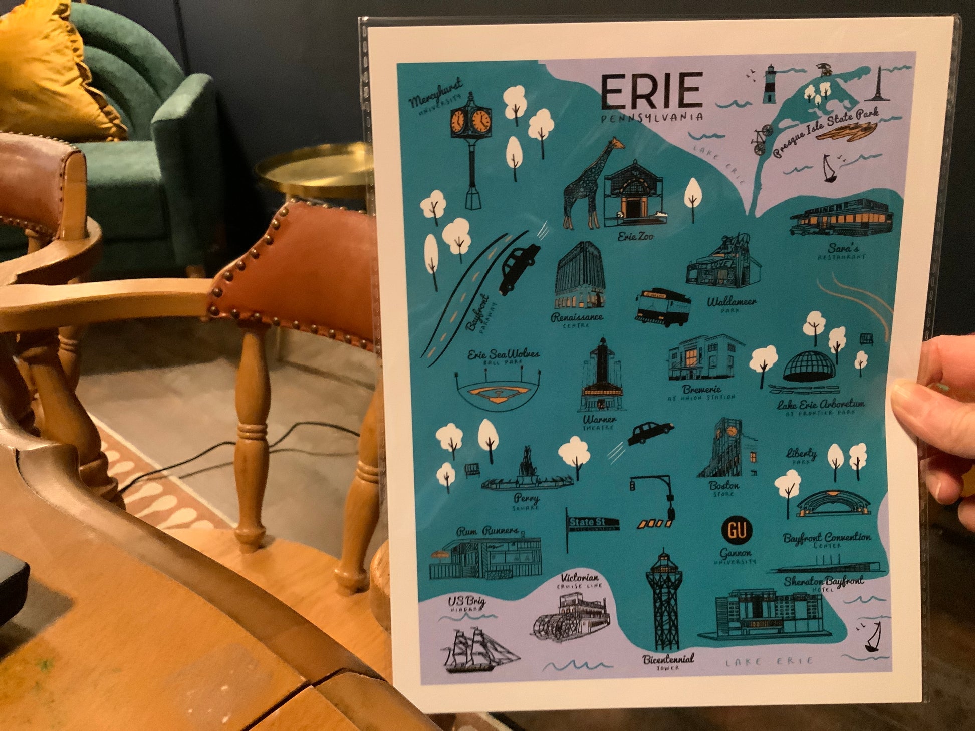 An 8 x 10 print of a map of of sites and landmarks around Erie, Pa.
