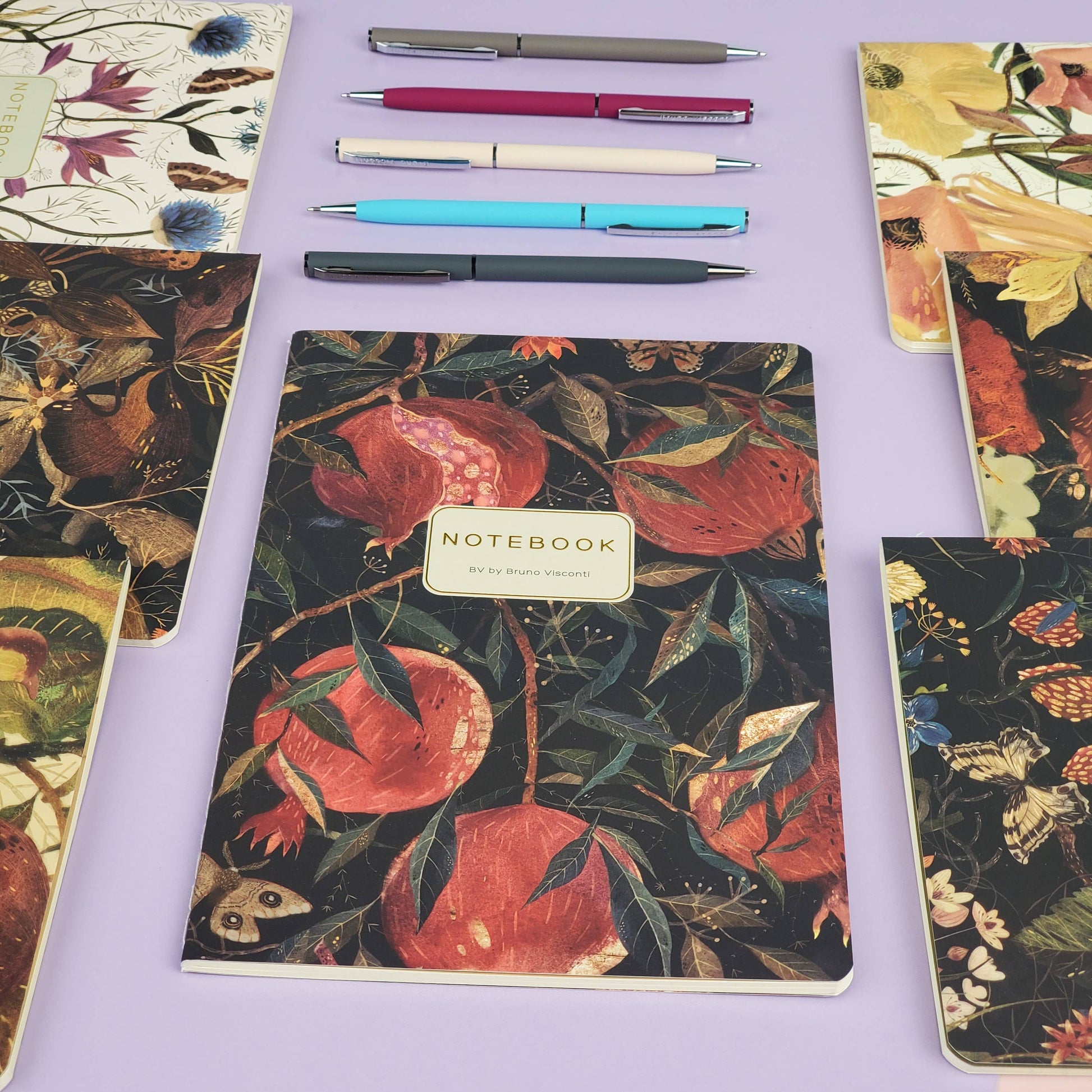 Notebook Series Features: Size:8.27 x 5.83 inches, Cover Material: Coated cardboard, Ruled, 40 Lined pages, 1 Design per Case pack. Features rich autumn colors.